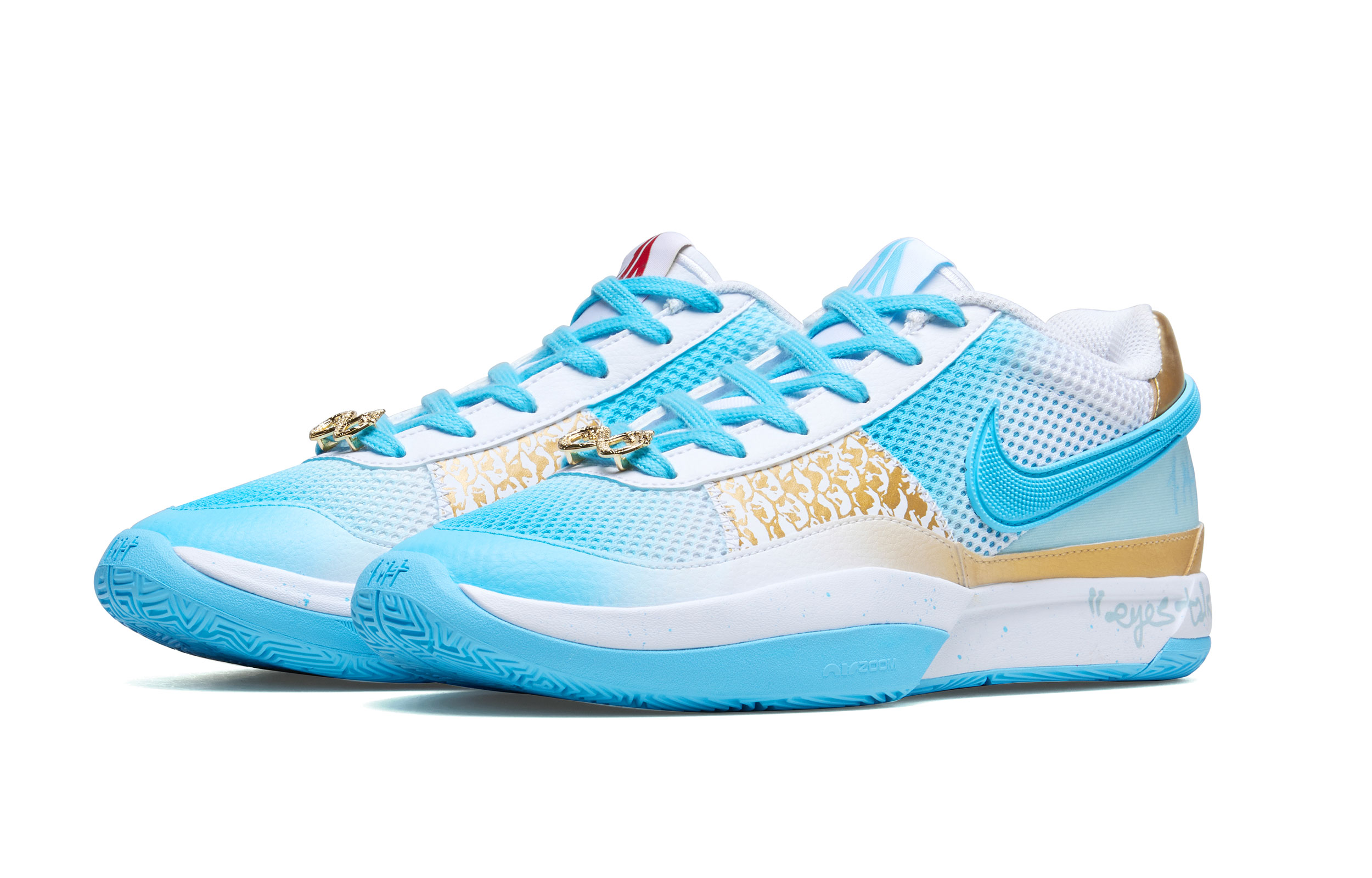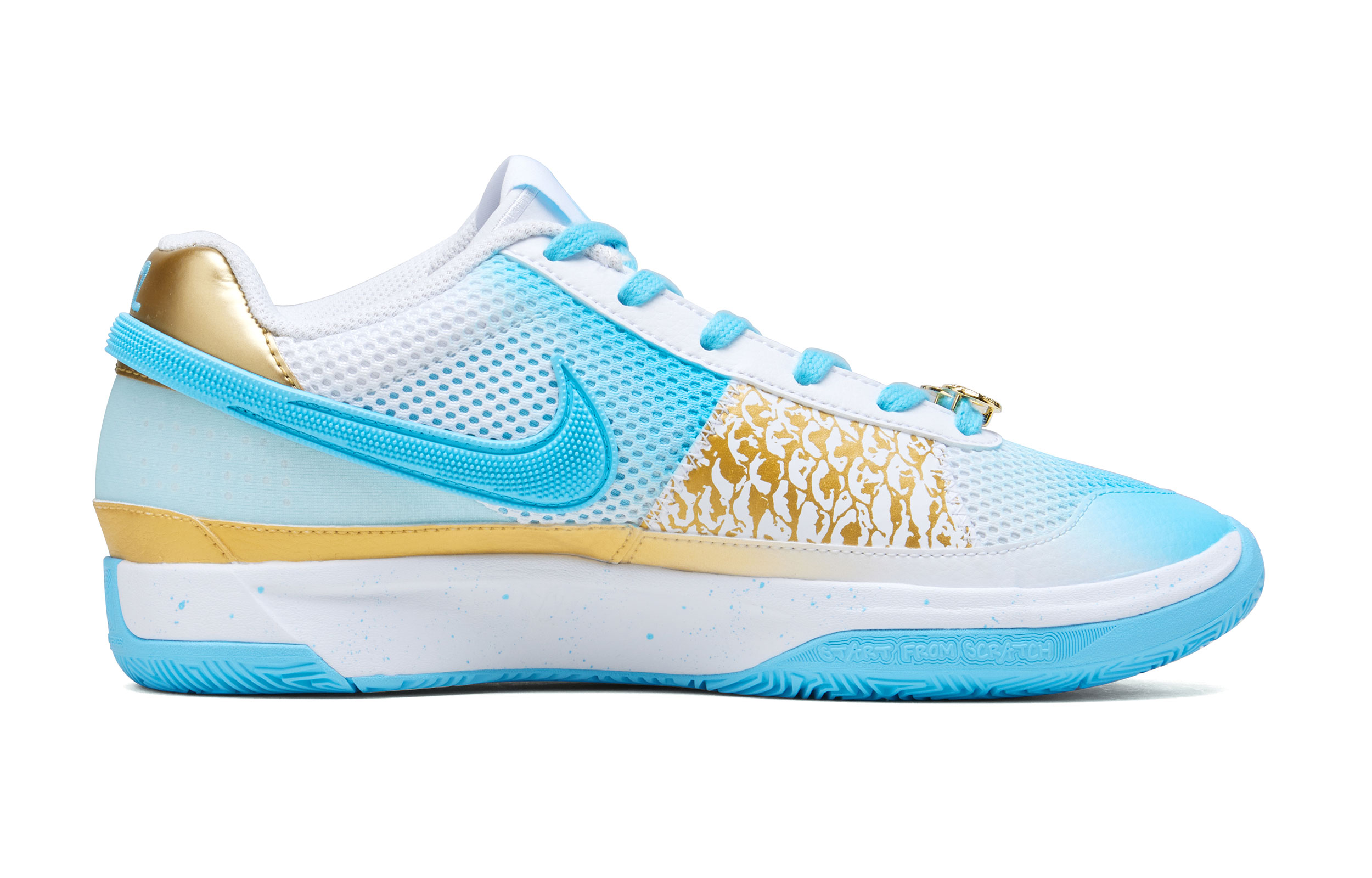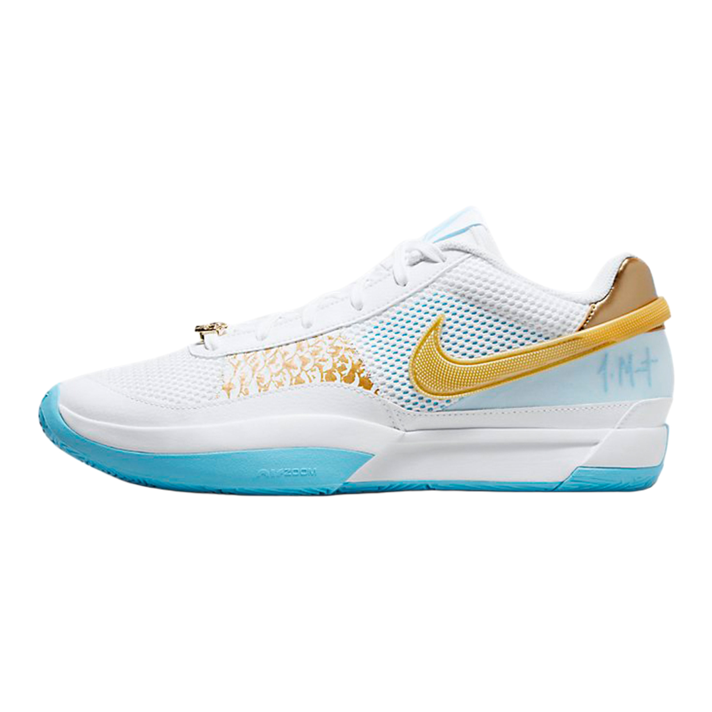 Кроссовки мужские Nike Ja Morant 1 бело-голубые и золотые, 43 EU
