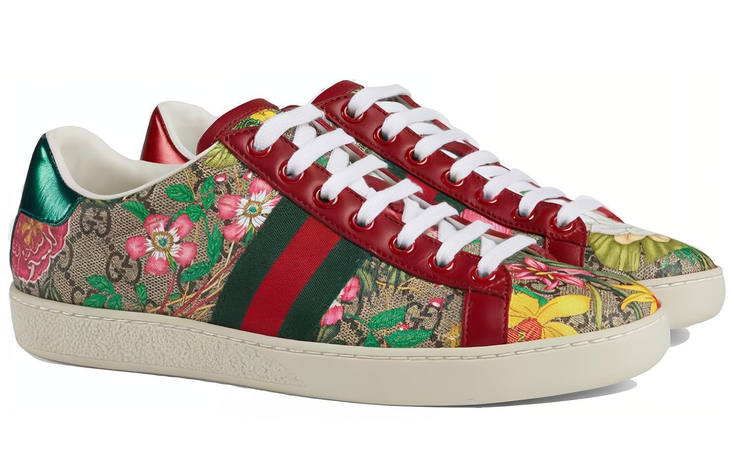 Кеды женские GUCCI Ace GG Supreme Low Flora Print красные, 34 EU