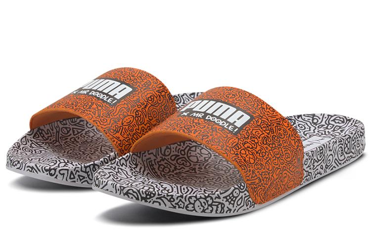 Шлепанцы унисекс PUMA Mr. Doodle X Leadcat orange-grey, 38 EU