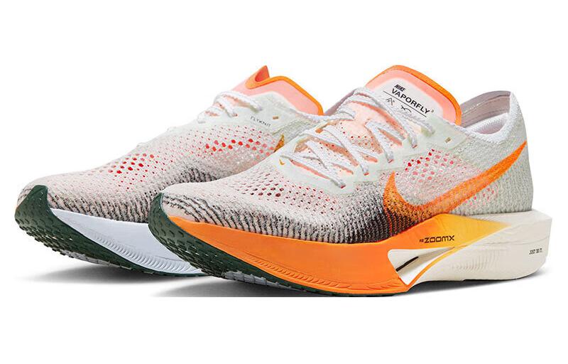 Кроссовки мужские Nike Vaporfly Next 3 в цвете Sea Glass/Bright Mandarin – это высшее достижение в мире беговых обуви, созданное для максимальных результатов на дистанции. Модель доступна в размере 41 EU и сочетает в себе передовые технологии и стильный дизайн, обеспечивая идеальный баланс между производительностью и комфортом.Кроссовки Nike Vaporfly Next 3 оснащены инновационной подошвой ZoomX, которая обеспечивает исключённую амортизацию и отдачу энергии при каждом шаге, позволяя легко накладывать ноги на асфальт даже на длинных дистанциях. Их легкая конструкция способствует снижению усталости и позволяет сосредоточиться на беговом процессе. Подошва с углубленным протектором оптимизирует сцепление с поверхностью, что делает их надежными как на дорожных, так и на спортивных маршрутах.Одной из выдающихся особенностей модели является система карбоновой пластины, которая использует технологию «carbon-fiber plate» для повышения жесткости и эффективного перенаправления энергии от кроссовка к бегу. Это делает каждый толчок более эффективным и позволяет увеличивать скорость без дополнительных усилий. Мягкий верх с сетчатой текстурой обеспечивает отличную вентиляцию и воздухопроницаемость, что важно для комфортного бега даже в жаркую погоду.Кроссовки также имеют анатомическую форму, что позволяет добиться идеальной посадки на ноге и уменьшает риск возникновения мозолей и натираний. Подкладка и стелька выполнены из высококачественных материалов, которые обеспечивают уют и дополнительную поддержку во время движения. Легкие шнурки дают возможность легко регулировать посадку под ваши индивидуальные предпочтения.Nike Vaporfly Next 3 – это выбор профессиональных спортсменов, которые стремятся к личным рекордам и долговечной надежности. Эти кроссовки идеально подходят как для тренировок, так и для соревнований, помогая вам раскрыть свой потенциал и добиваться выдающихся результатов на любом расстоянии. Выберите Nike Vaporfly Next 3 и позвольте своему бегу стать настоящим искусством.