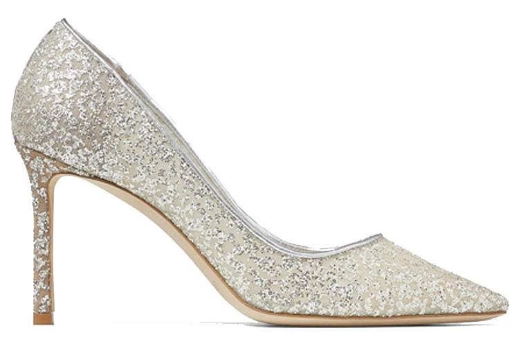 Туфли женские Jimmy Choo Romy 85mm Pumps серебристо-бежевые, 36 EU