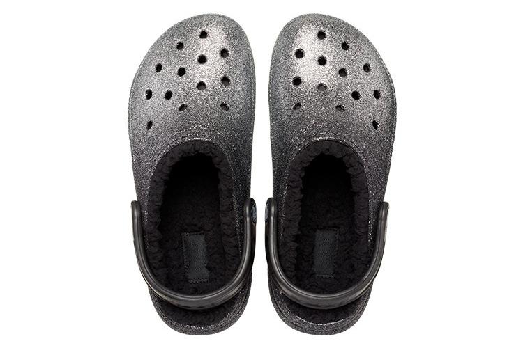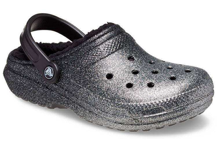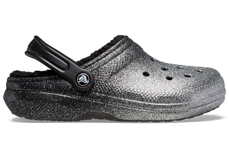 Шлепанцы женские Crocs Classic Glitter Lined черно-серебристые, 36-37 EU